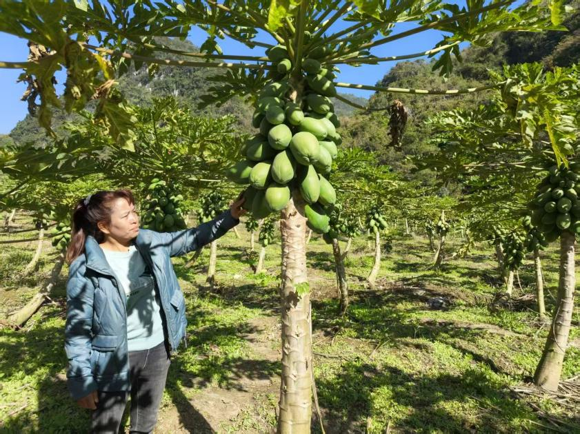 张兴萍还结合当地气候特点,科学规划种植周期,让木瓜的采收期长达9个月,从每年9月到次年5月持续挂果,6至8月则重点进行管护修枝、养树施肥,张弛有度、顺应时节。曾经,村民们过着“半年忙、半年闲”的日子,闲时无事可做、无钱可赚,只能靠打零工补贴家用;如今,木瓜基地让乡亲们在家门口常年有事做、有钱赚,彻底改变了以往的闲置状态,也让大家的日子变得充实而有奔头。